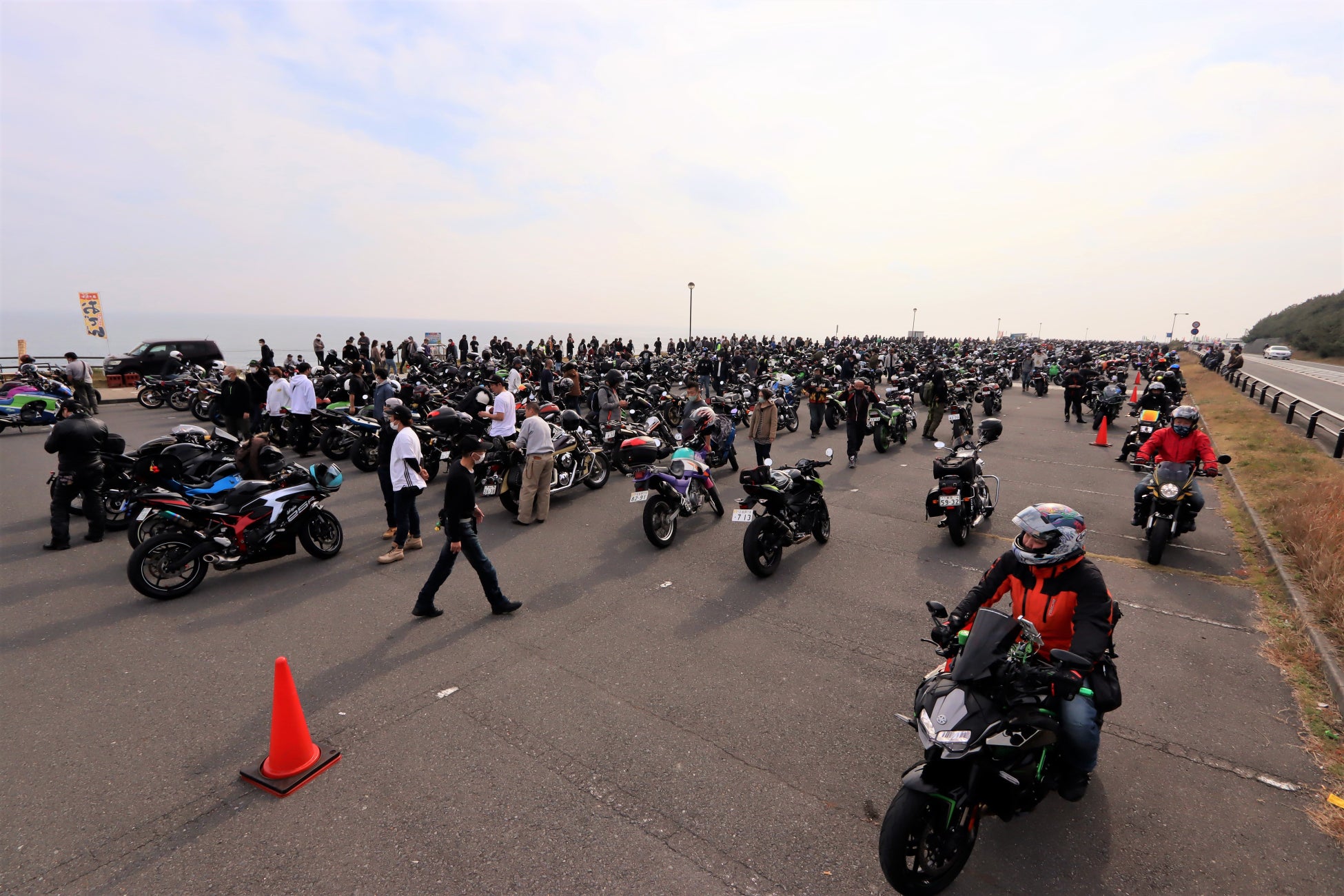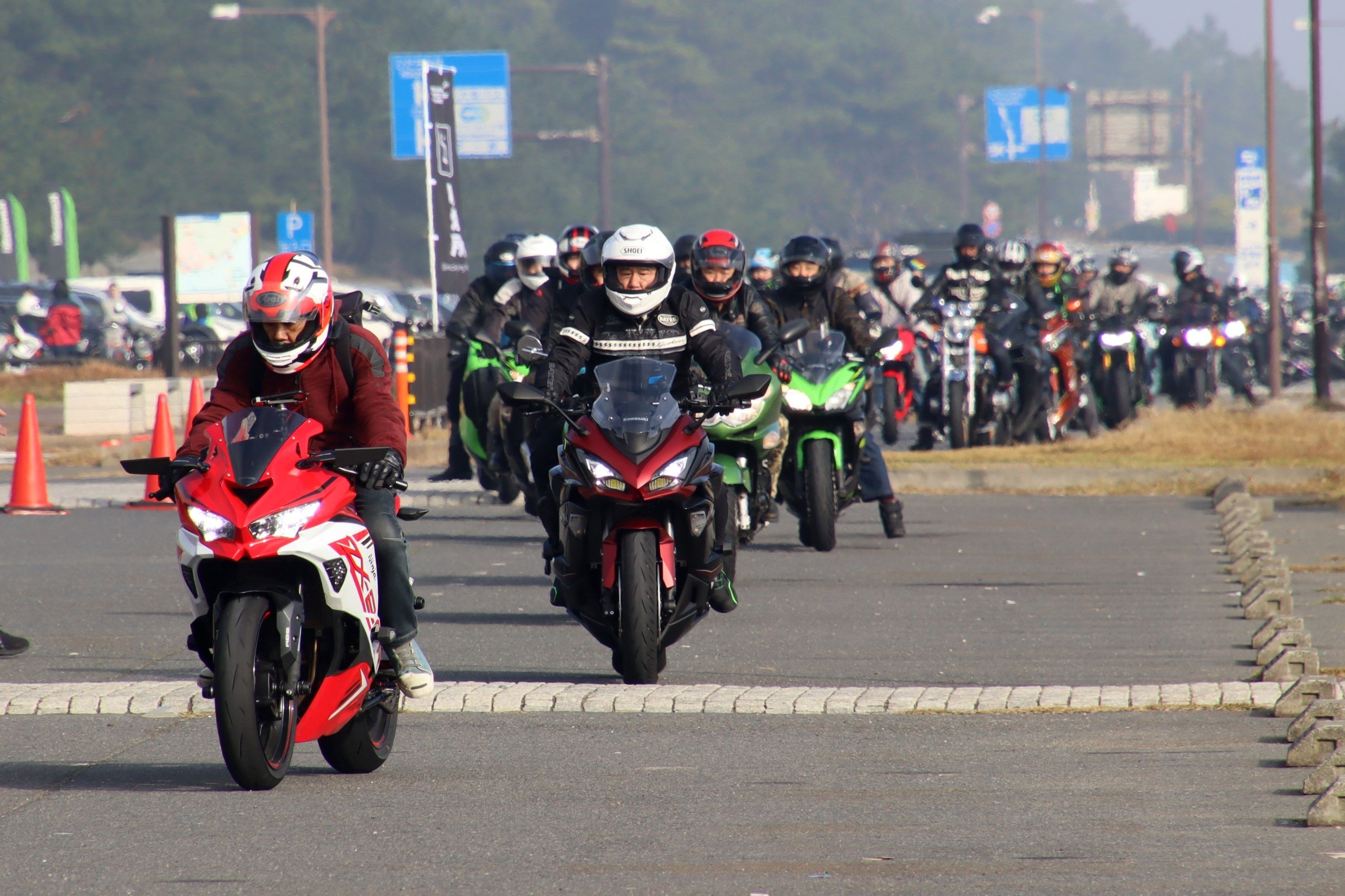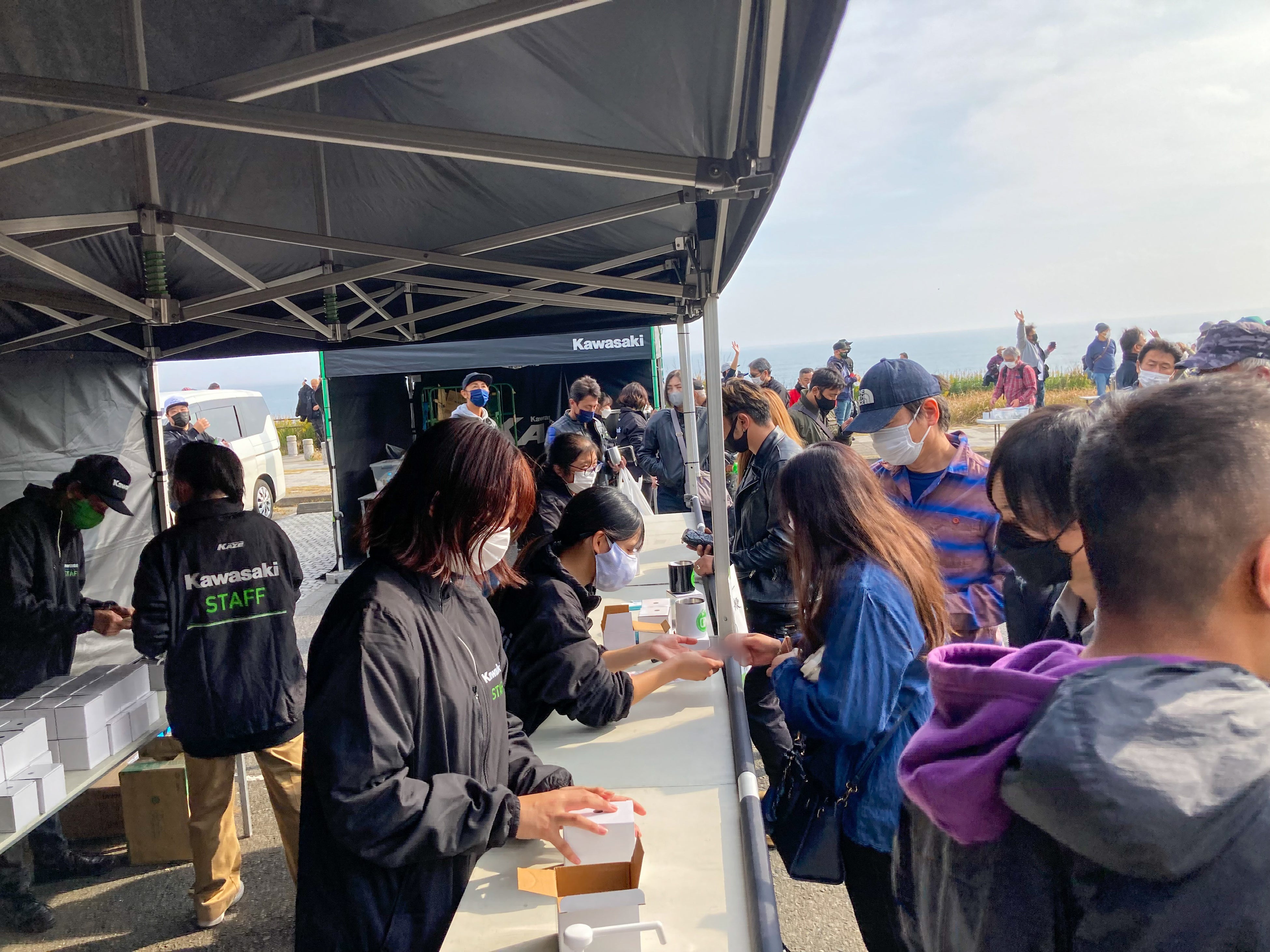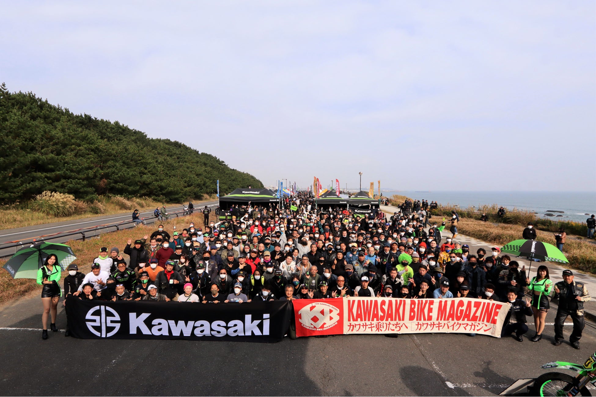 会場となった大洗公園県営駐車場には、9時の開場より30分程度で2,000名の来場があり、その後も入場されるバイクの列は12時過ぎまで途切れることはなく最終約3,900名のカワサキファンが集結。