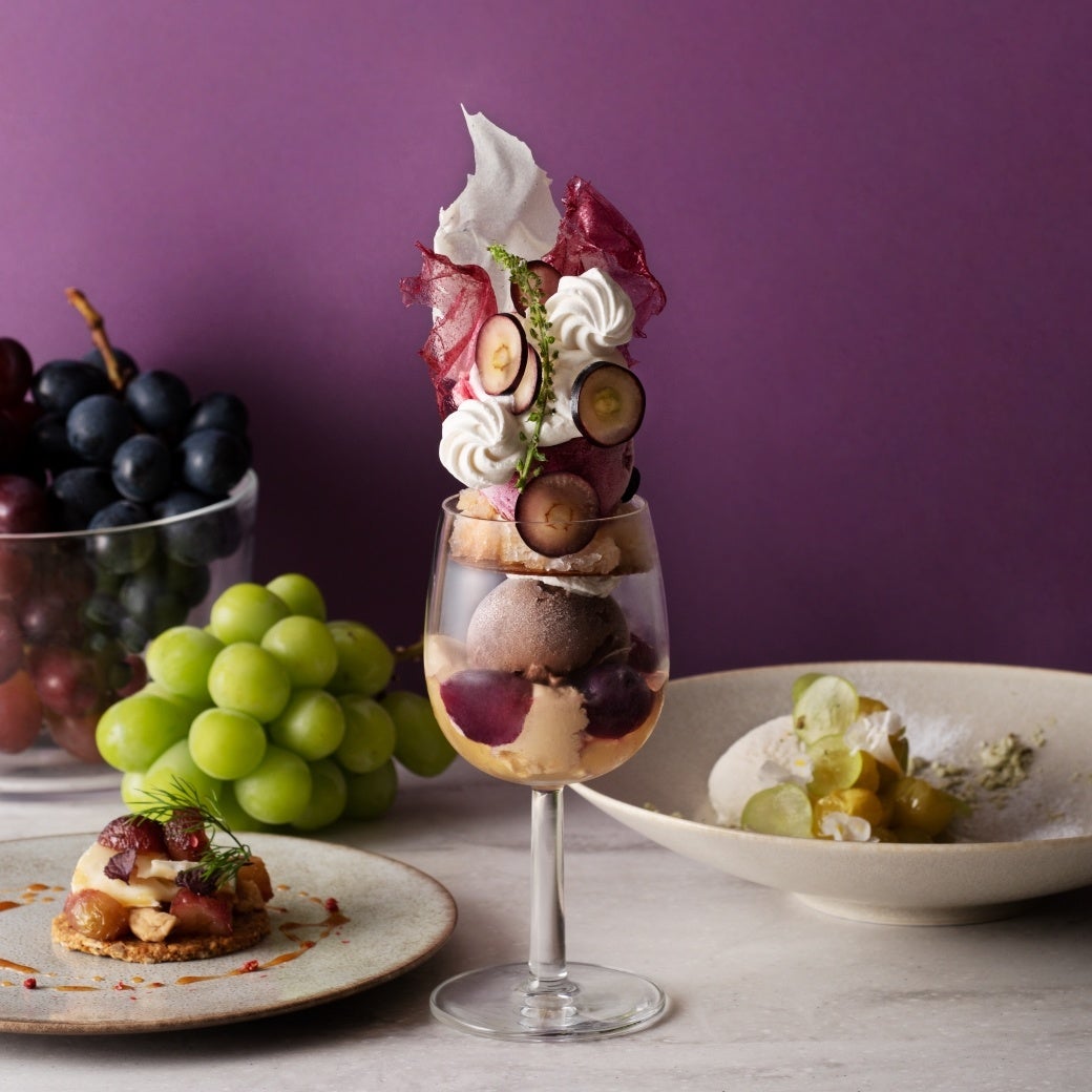 フルーツが好きすぎて、こうなりました。秋の訪れを感じるぶどうのフルコースと、宝⽯箱のようなフルーツタルトが登場。今年は8月31日(水)から