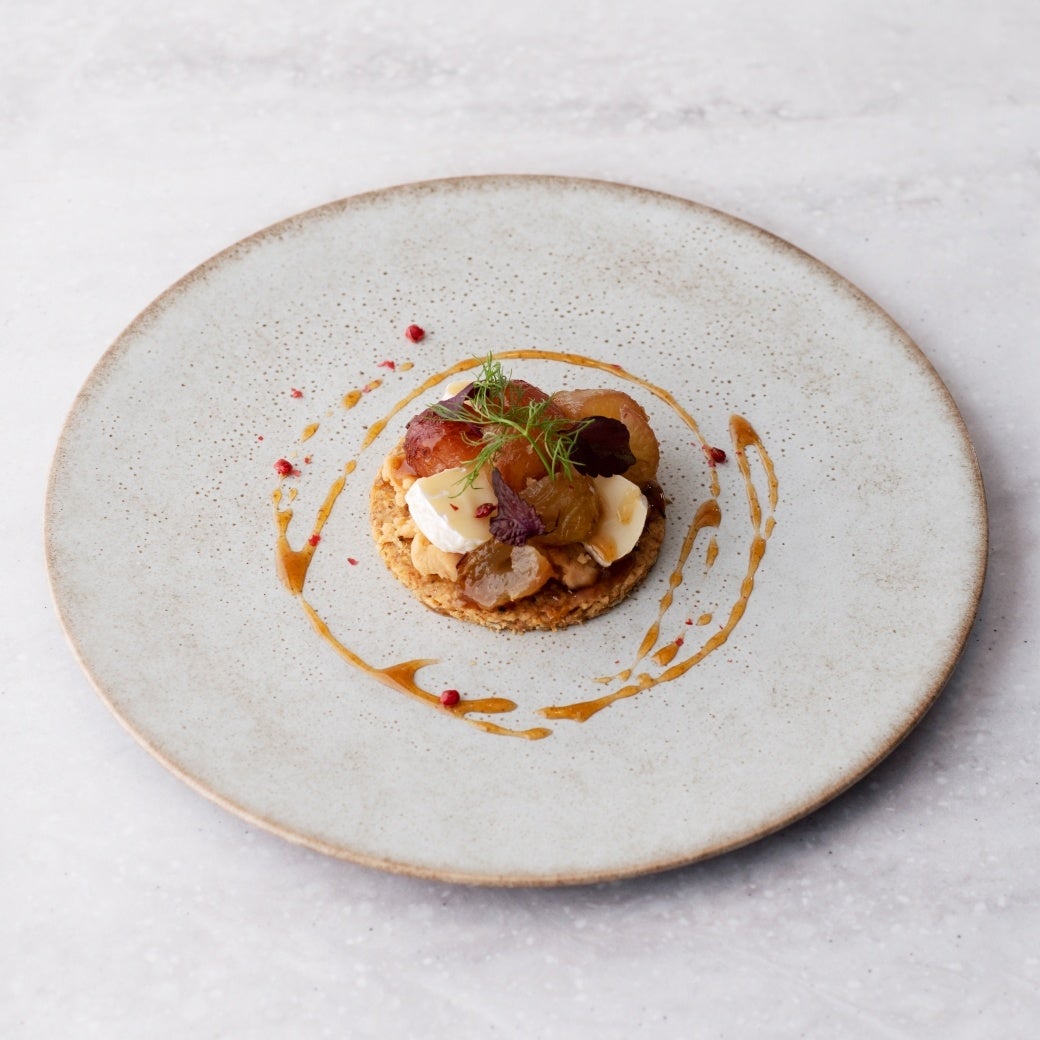 赤系ぶどうでこっくりと。穀物のうまみがぎゅっと詰まったセイボリータルトに、ローストしたぶどうとさつまいものディップ、カマンベールチーズをたっぷり乗せて、多彩な食感がひしめくリッチな味わいに。