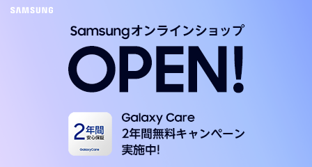 また、Samsungオンラインショップのオープンを記念し、Samsungオンラインショップにて、対象期間中に対象製品をご購入・「Galaxy Care」にお申し込みいただいたお客様全員に「Galaxy Care 2年間分」を無料でプレゼントする「2年間のあんしん保証プレゼントキャンペーン」※3を開催いたします。