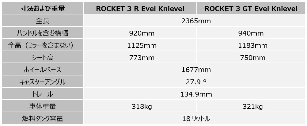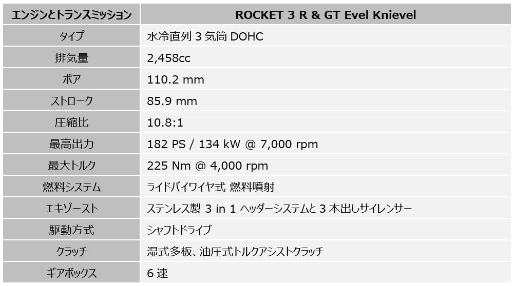 また、Rocket 3 RとGT Evel Knievel Limited Editionには最適化されたコーナリングABS機能も装備されています。