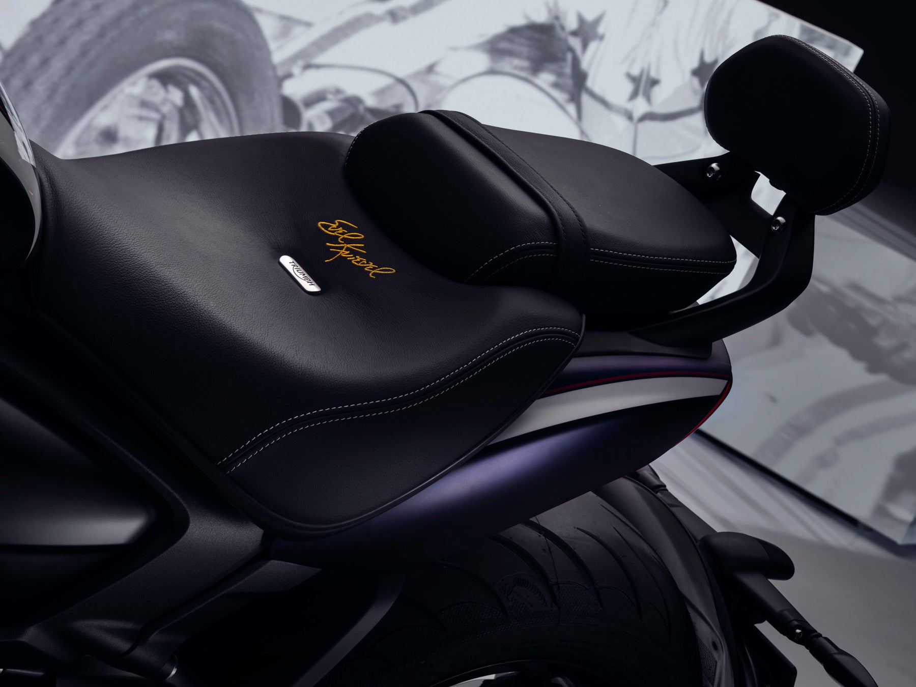 また、各モデルにはそれぞれ専用のシートが設定されています。Rocket 3 Rのシート高は773mmで、快適性、低速域での安心感、操縦性を提供するロードスター・ライダー&パッセンジャー・シートを採用。長時間のライディングでの快適性を向上させるために設計されたRocket 3 GT Evel Knievel Limited Editionは、ライダーシートとリアシートにたっぷりとパッドを入れ、同色のレザー製リアバックレストを装備することで、パッセンジャーの快適性とスタイルの両方を確保し、ツーリングでの快適性を高めています。GTのシート高はわずか750mmで、ライダーにとっての信頼性をさらに高めます。