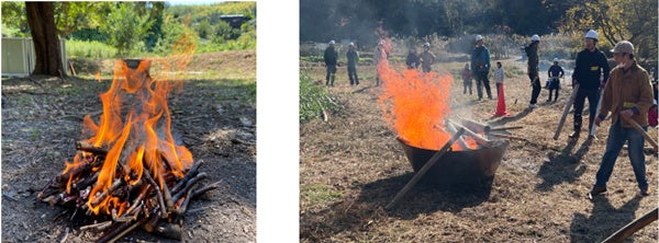 (2)竹炭づくり体験:焚火の火種を入れて竹炭をつくろう