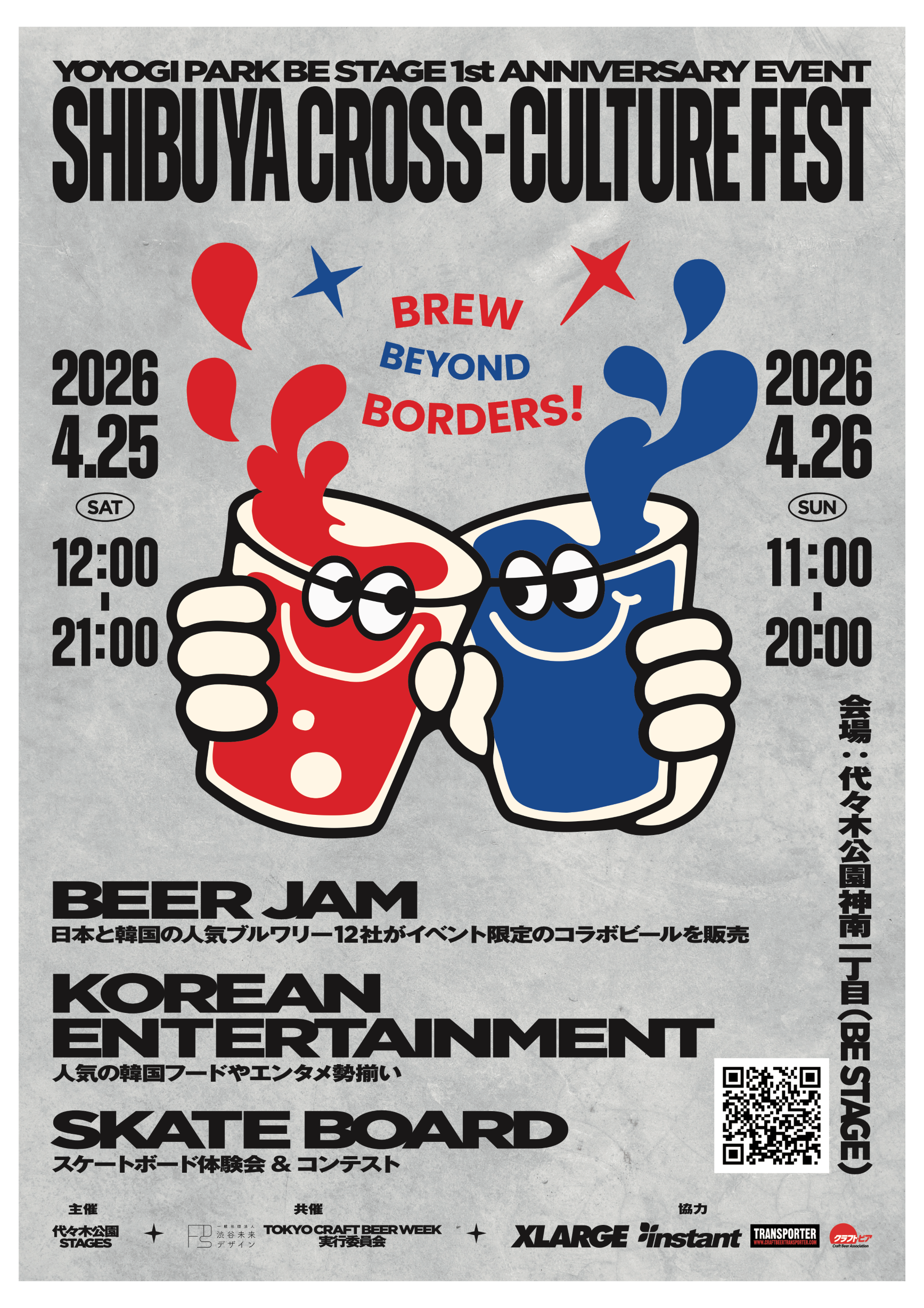 本イベントは、クラフトビールを起点に、韓国フード、エンターテインメント、スケートボードといった多様なカルチャーを掛け合わせ、渋谷らしい都市型の交流とにぎわいを創出するものです。ジャンルを横断しながら、食、体験、コミュニティが有機的につながる新たな都市体験の場を目指します。