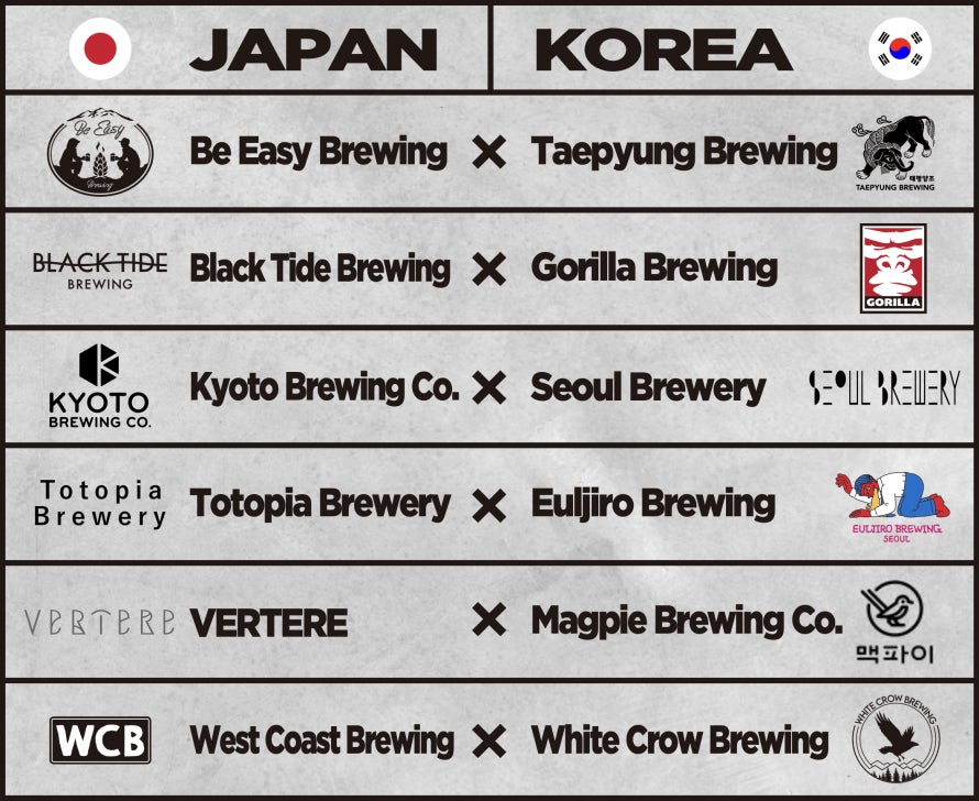 日本と韓国の人気ブルワリー12社が参加し、本イベント限定のコラボビールを販売します。