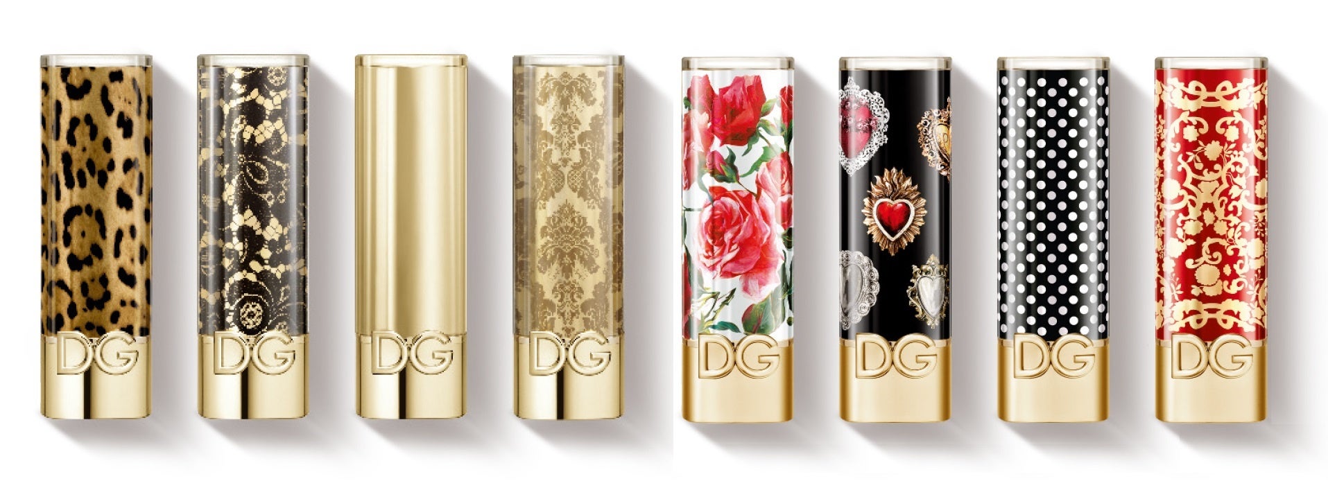 「ザ・オンリーワン ラスティングマットカラー リップスティック」には、01:ゴールド、02:レース、03:ダマスク、04:レオパード、05:ハート、06:ローズ、07:アドーンメント、08:ドットの8つのデザインがあり、この中からリップスティックをカスタマイズすることができます。それぞれのデザインがドルチェ&ガッバーナの象徴であり、女性の美しさの様々な面を表しています。