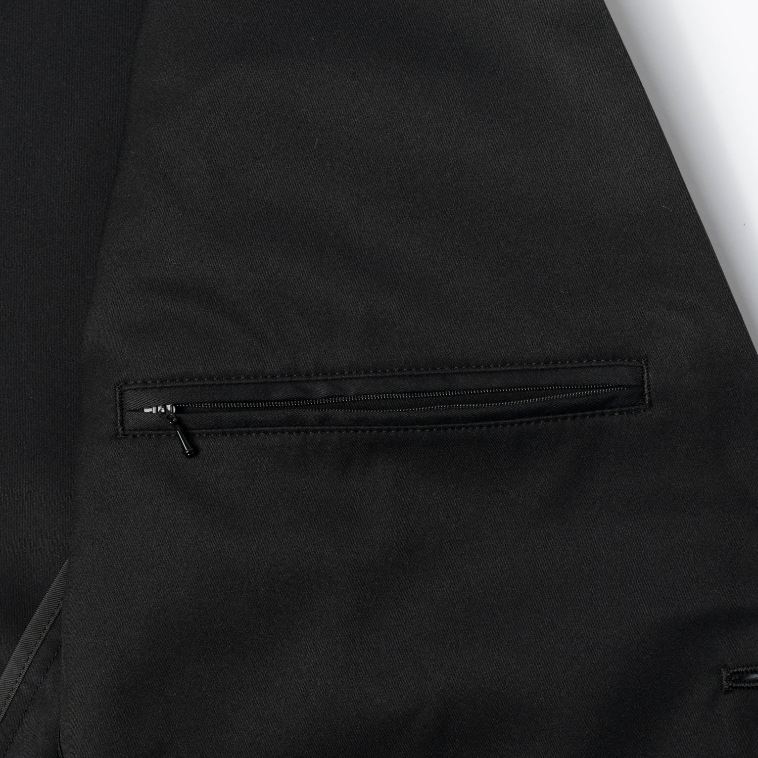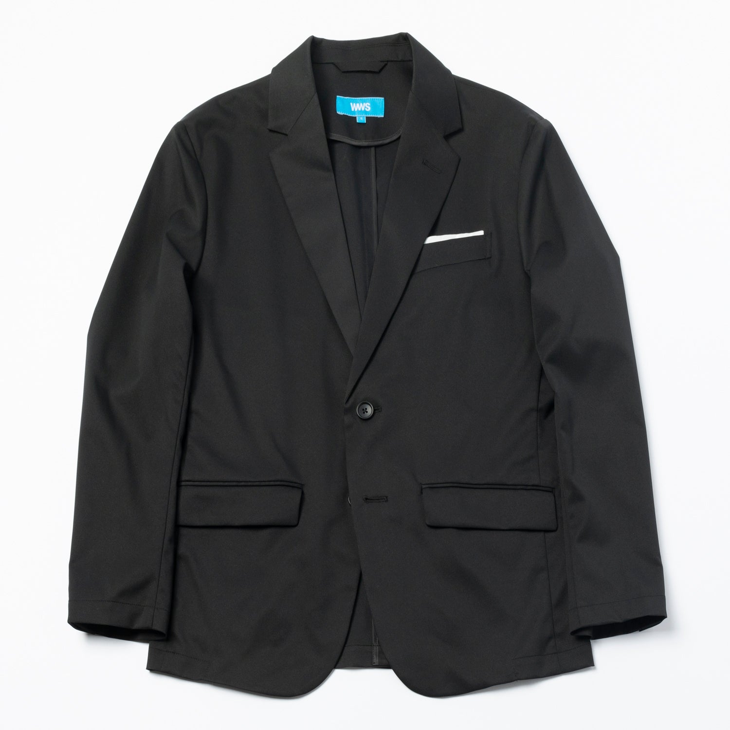 特徴:計5つのポケットがあり、収納力抜群。左胸ポケットにはフェイクチーフを搭載、左内側ポケットにはファスナーがついており、物が落ちない仕様にしました。独自開発素材「ultimex」を用い、伸縮性・耐久性・撥水性・速乾性、しわになりにくいイージーケアに加え、365日洗濯機で丸洗いできます。