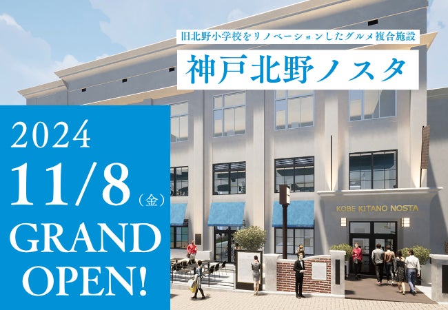 GLIONグループ(ジーライオングループ 所在地:兵庫県神戸市)と株式会社アクアイグニス(所在地:東京都)が運営する株式会社神戸北野スイーツ&カフェは、神戸市より事業者公募が行われた旧北野小学校跡地(1996年廃校)を活用し、2024年11月8日(金)よりグルメ複合施設「神戸北野ノスタ」を開業いたします。