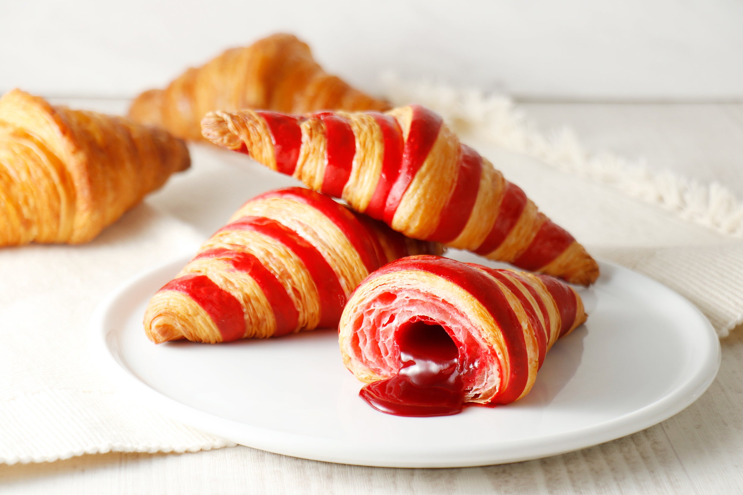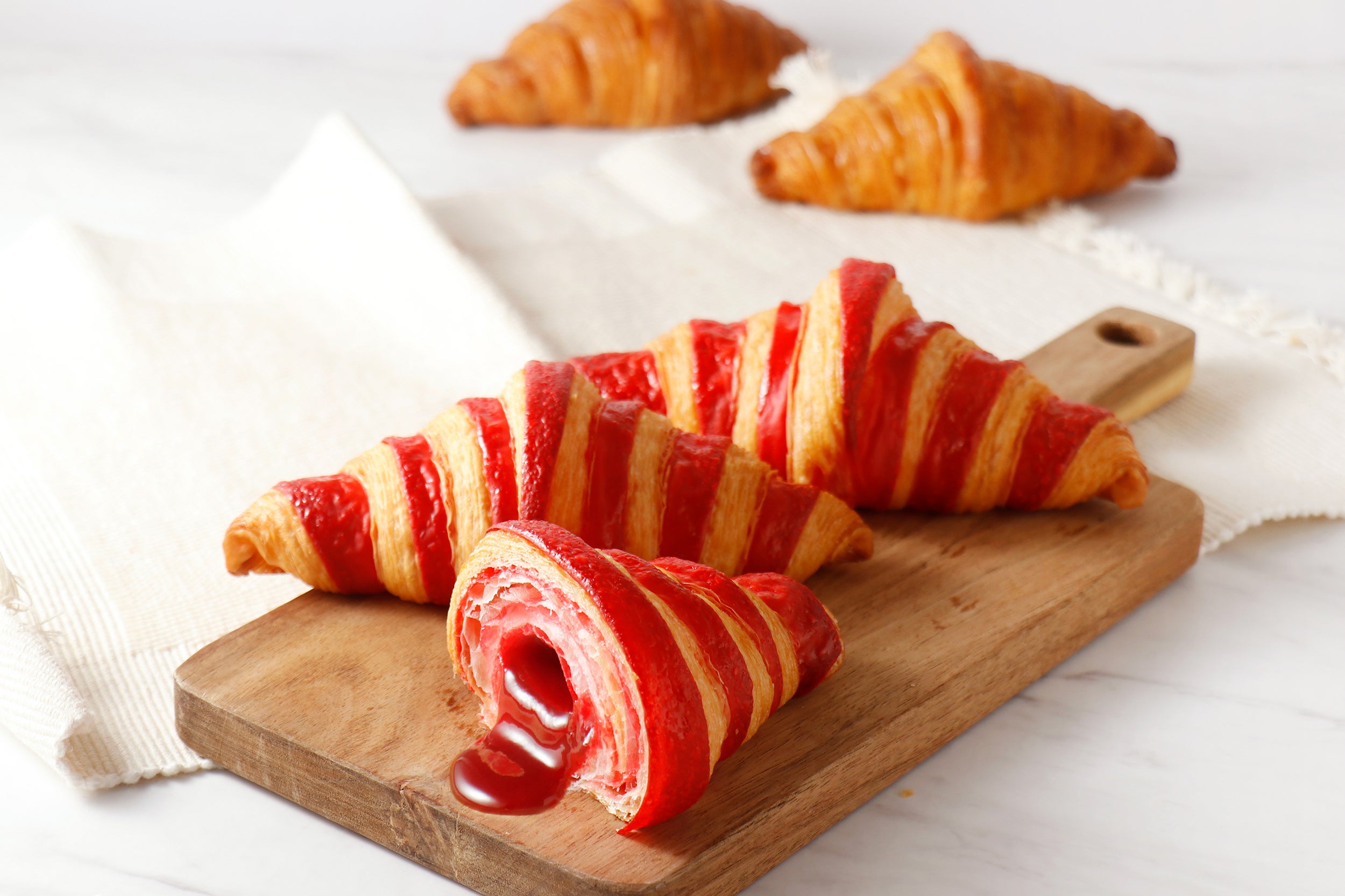 カルピスバターを使用した「クロワッサン(画像左)」とフランボワーズのコンフィチュールがたっぷり入った「クロワッサン ベリー(画像右)」