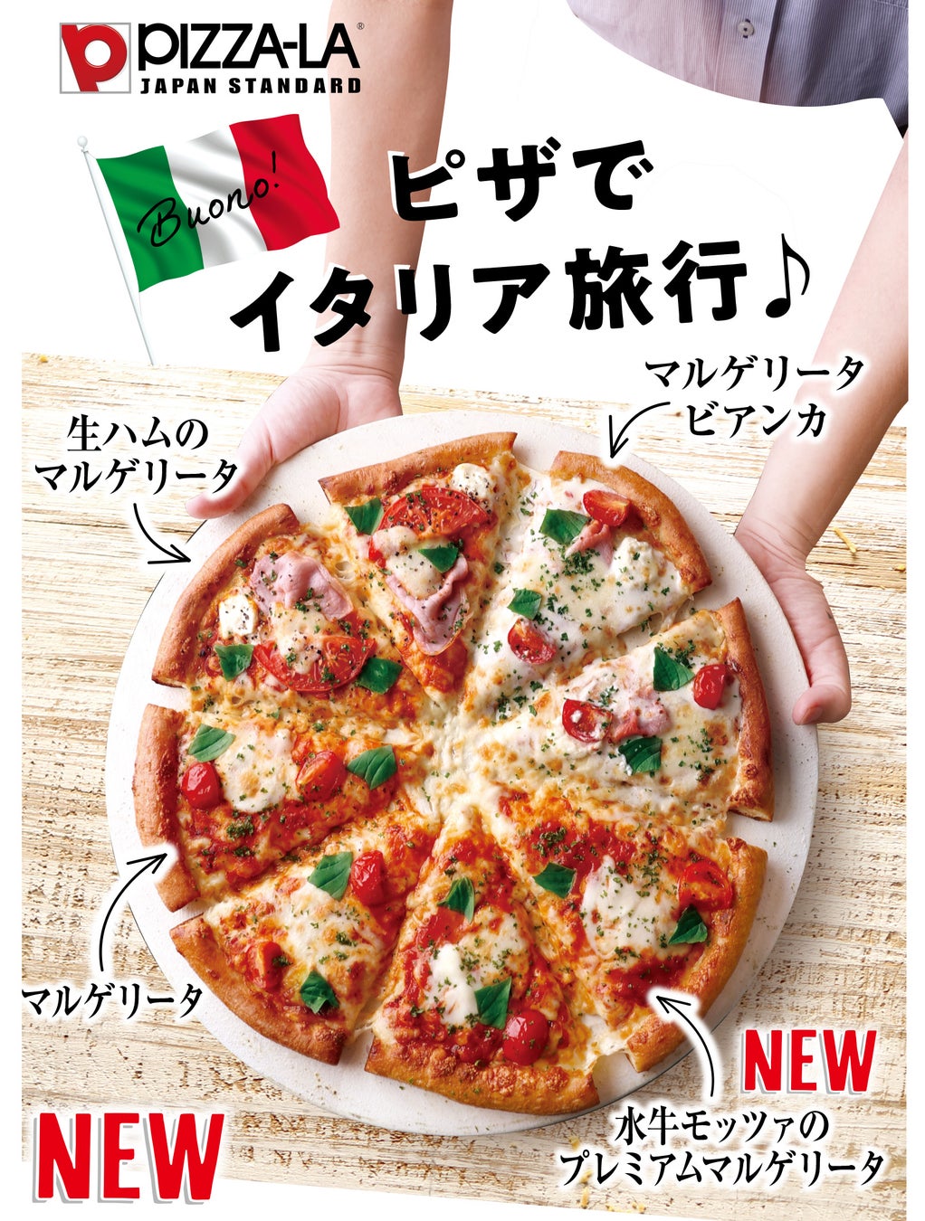 ピザーラでは、定番人気ピザのマルゲリータを、今年の夏さらに美味しくリニューアル!トマト、バジル、モッツァレラチーズを最高のバランスでトッピングし、さらに人気を加速させています。