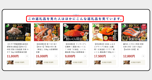 ほかのユーザーが閲覧している返礼品を表示しクロスセルを促進