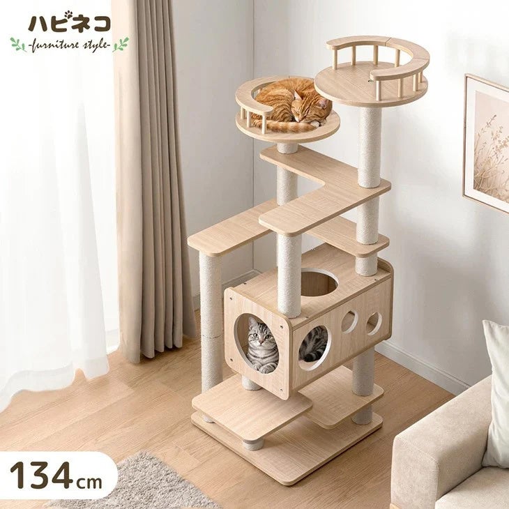 足腰の弱い子猫やシニア猫でも上り下りしやすい「高さ98cm」と、活発な猫が思いっきり遊べる「高さ148cm」の2タイプを展開。愛猫の成長段階や、お部屋のスペースに合わせて最適なモデルを選択可能です。