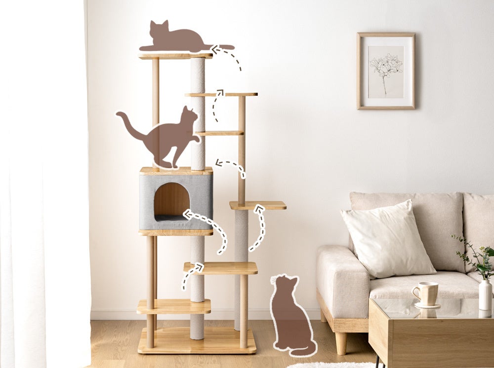 高さ120cmにすることにより、お部屋に置いていただいても圧迫感が出にくく、また高さが低いので子猫やシニア猫でも安心してご使用いただけます。