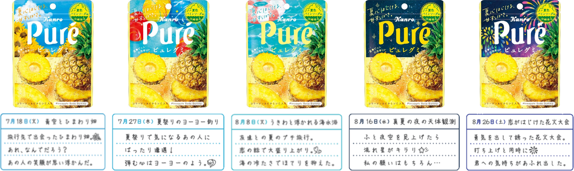 “夏”を切り取ったエモーショナルな選べるデザイン!裏面には「ひと夏の恋」を綴った日記もカンロ「ピュレグミ夏色パインソーダ」新発売~パインとソーダの組み合わせでトロピカルな味わいの夏季限定フレーバー~