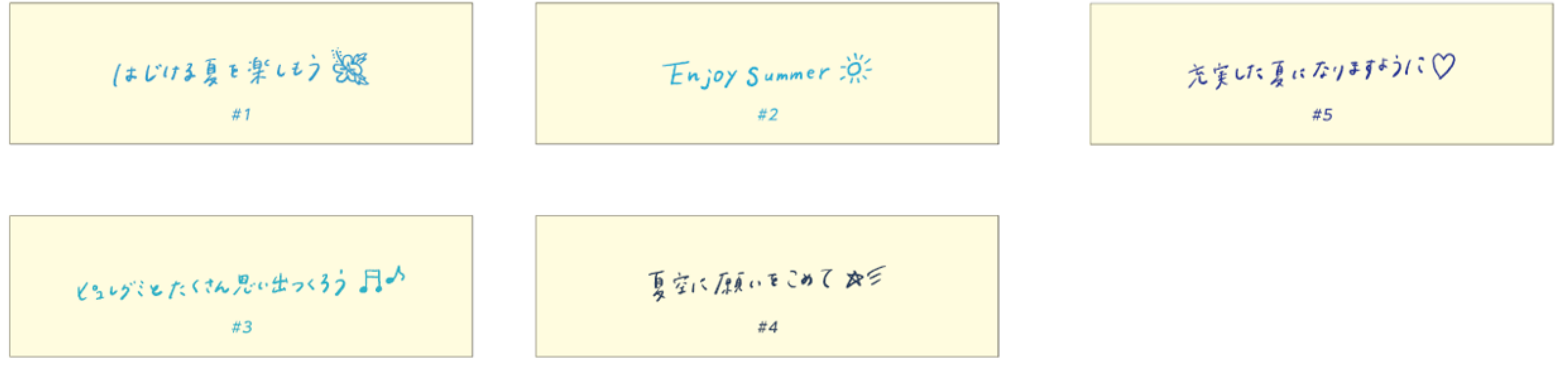 底面には「はじける夏を楽しもう」「夏空に願いをこめて」など、見つけたらうれしい夏にぴったりの明るく前向きになれるメッセージが隠されています。 ぜひ、「夏の日記」と合わせてお楽しみください。