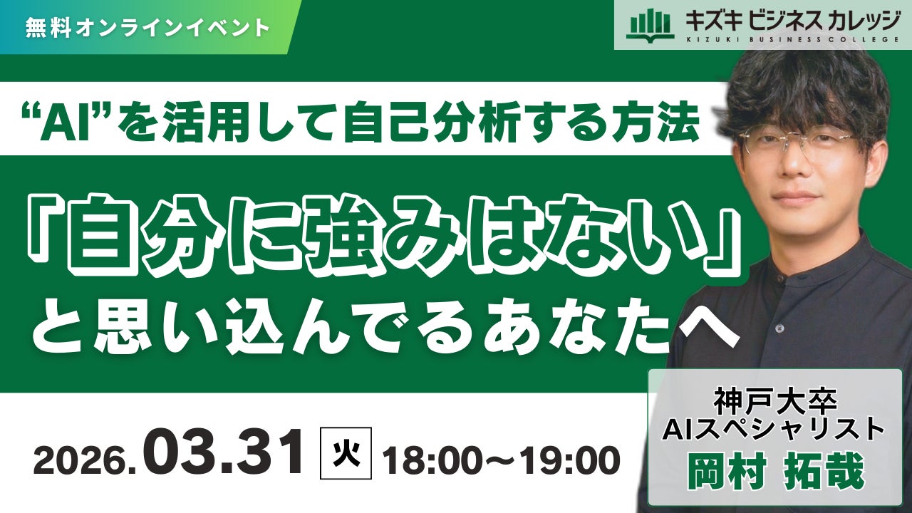 就労移行支援事業所・キズキビジネスカレッジ(KBC)は、2026年3月31日(火)に、「AIを活用した自己分析」をテーマにした無料オンラインセミナーを開催します。