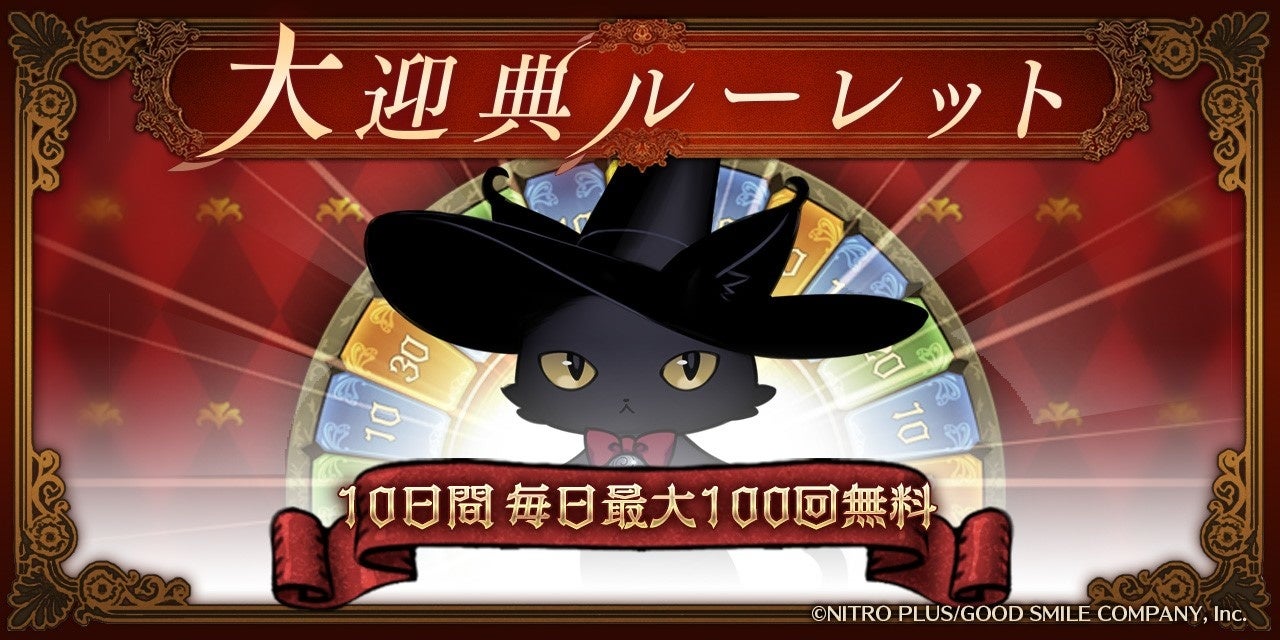アプリ『咲う アルスノトリア』では、10日間、毎日最大100回迎典(ガチャ)が引ける「大迎典ルーレットログインボーナス」を開催しています。