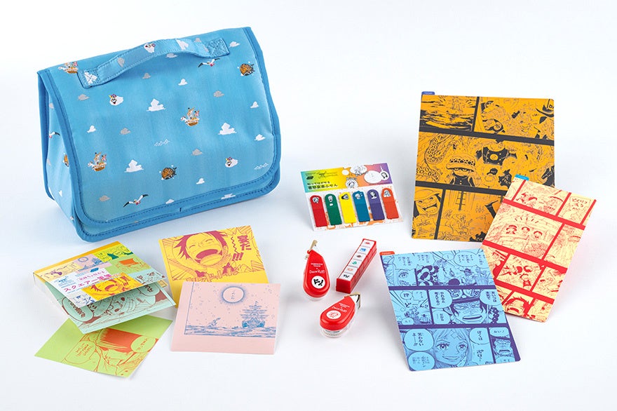 「stappo GRAND LINE」 4,400円(税込)、「貼ってはがせる 喜怒哀楽ふせん」 660円(税込)、「ほぼ日の下敷き Memories トラファルガー・ロー/ASL/ヤマト」 470円〜690円(税込)、「Pochitto6 ONE PIECE」 1,045円(税込)、「デコラッシュ ONE PIECE 麦わらの一味/どん!!」 420円(税込)、「気持ちが伝わる スクエア一筆箋Vol.3」 770円(税込)