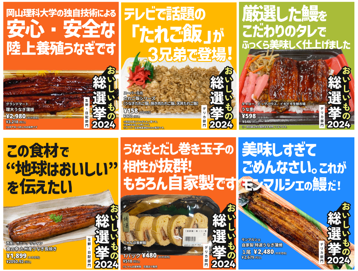 トクバイ主催の投票企画「おいしいもの総選挙2024」には、全国のスーパーマーケットから自慢の商品が集まります。今回の調査結果から、近年、高騰する中でも「うなぎ」は生活者から人気があることがうかがえます。「おいしいもの総選挙2024」においてもスーパーマーケット各社の趣向を凝らした魅力的な「うなぎ」関連商品が多数エントリーされています。