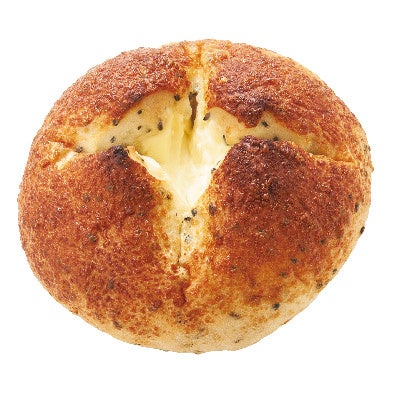 ほんのり甘みのある黒ごま生地に、まろやかなカマンベール風味のチーズフィリングを包み込み、表面にはパルメザンチーズをトッピングしました。一つで大満足な、食事にピッタリな商品です。