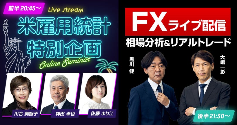 外為どっとコムでは、この発表時刻をまたぐ毎月恒例の無料オンラインセミナーを生配信いたします!