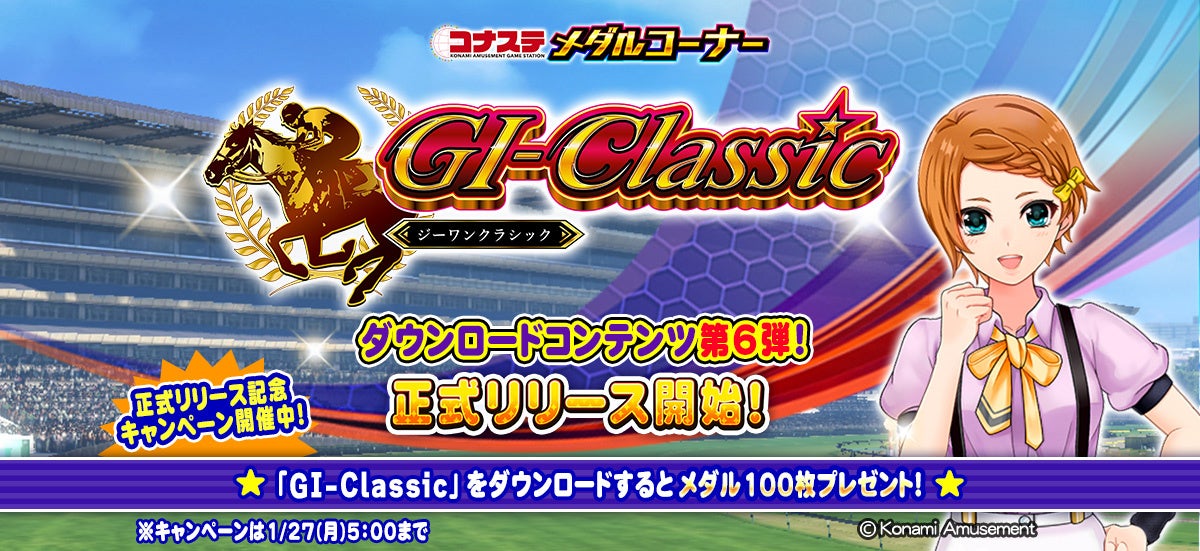株式会社コナミアミューズメントは、『コナステ メダルコーナー』アプリ内のダウンロードコンテンツとして「GI-Classic(ジーワンクラシック)」を追加したことをお知らせします。