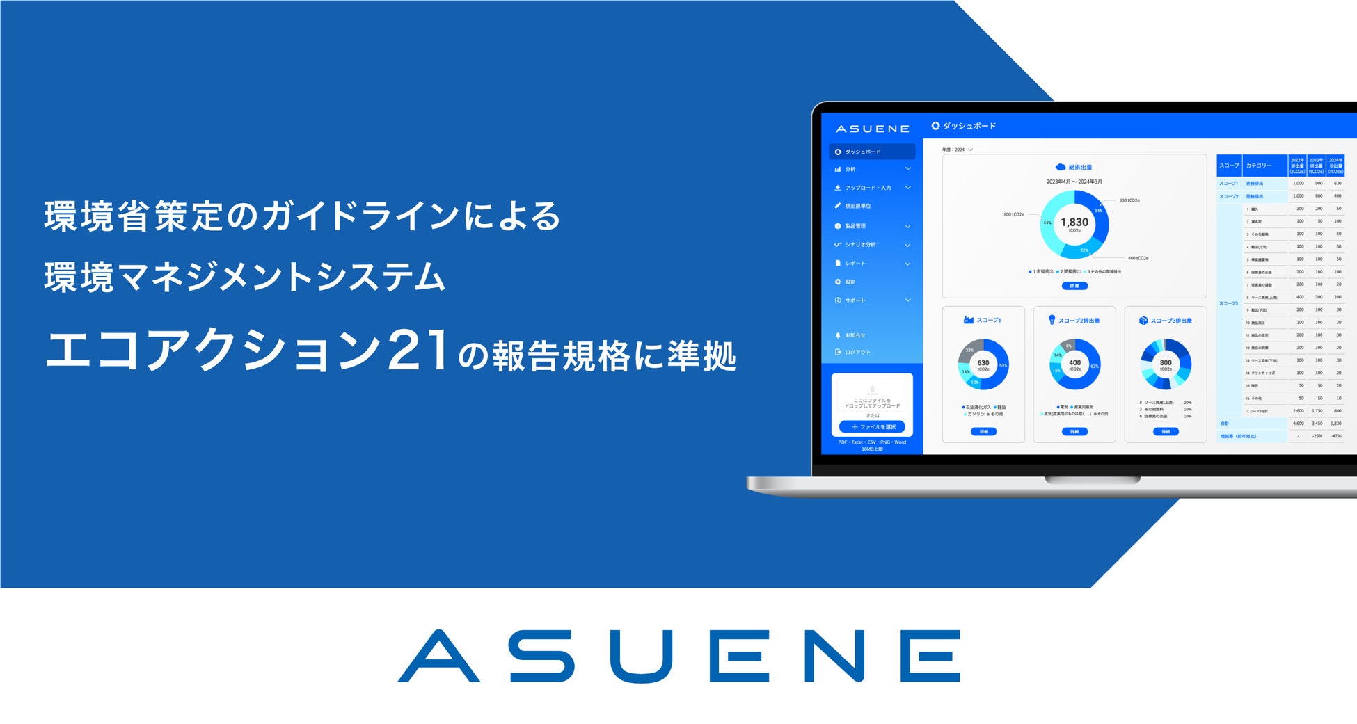 CO2排出量見える化・削減クラウド「ASUENE」、環境省策定のガイドラインによる環境マネジメントシステム「エコアクション21」の報告規格に準拠