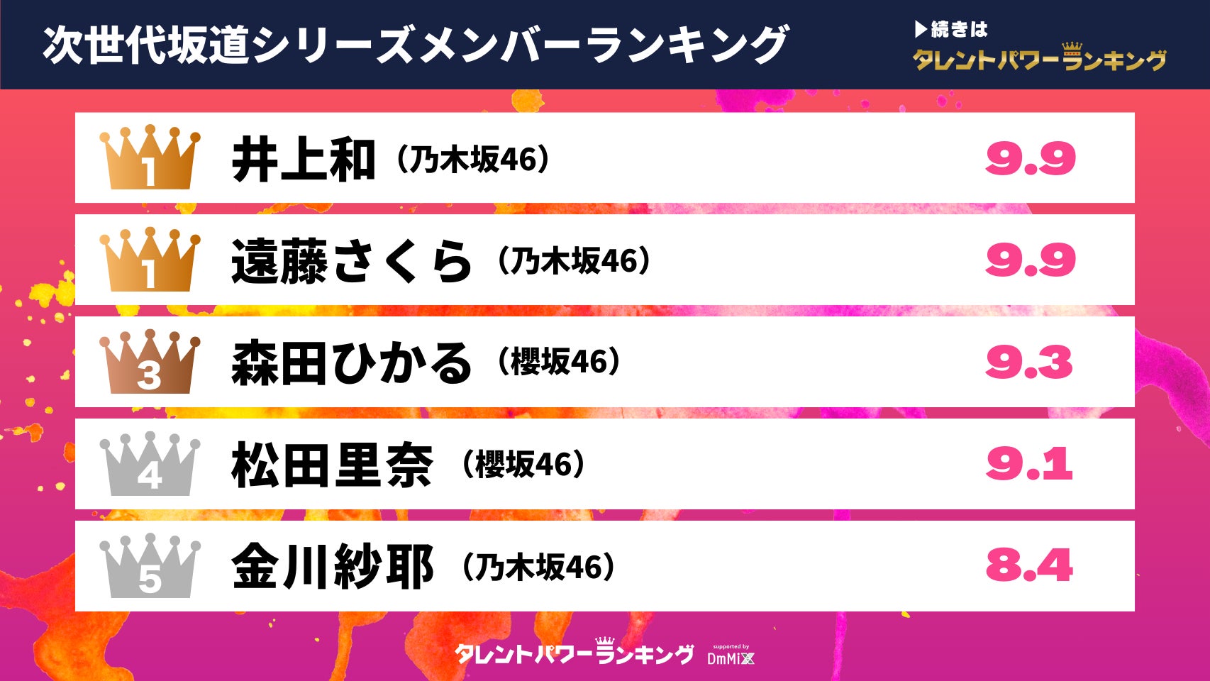 『タレントパワーランキング』が次世代坂道メンバーのタレントランキングを発表!WEBサイト『タレントパワーランキング』ランキング企画第350弾!