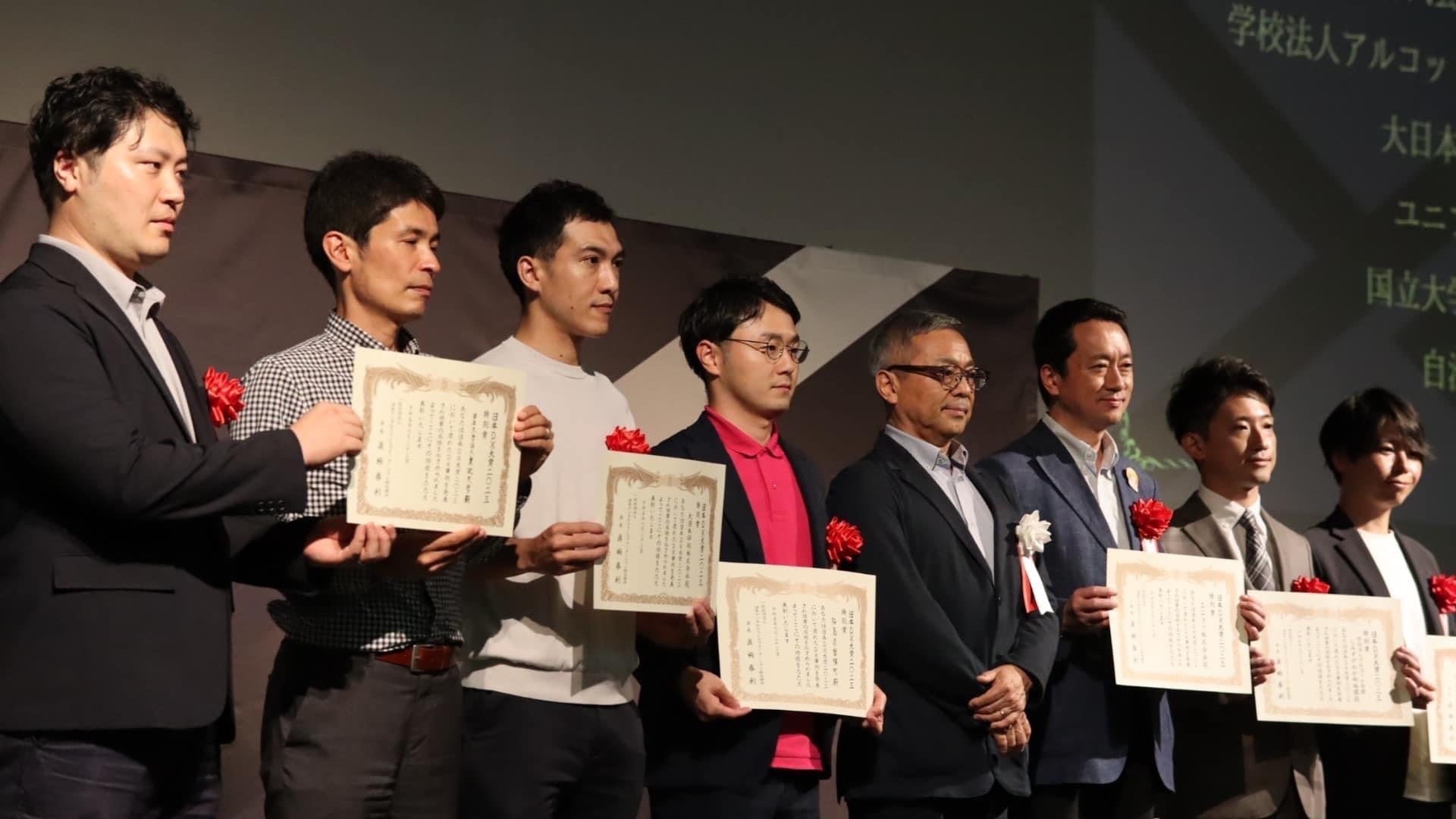 授賞式の様子(DNP社員の尾野さん:上の写真の左から3番目、下の写真の右から1番目))