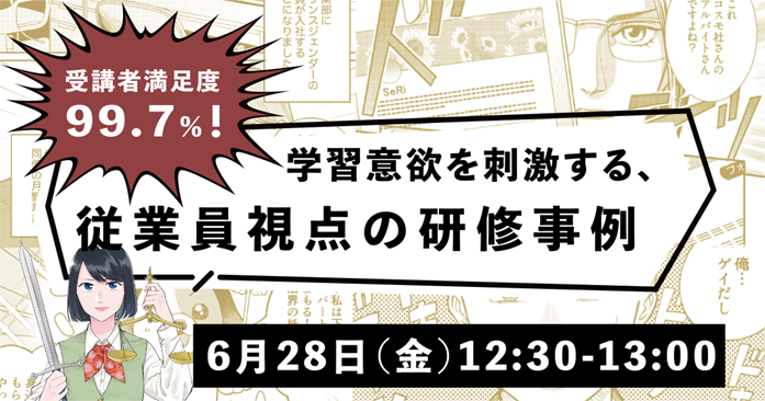 【日時:2024年6月28日(金)12:30~13:00】受講者満足度99.7%を誇るコミック教材を活用した法人向け研修サービス『コミックラーニング』がオンラインセミナーを開催!
