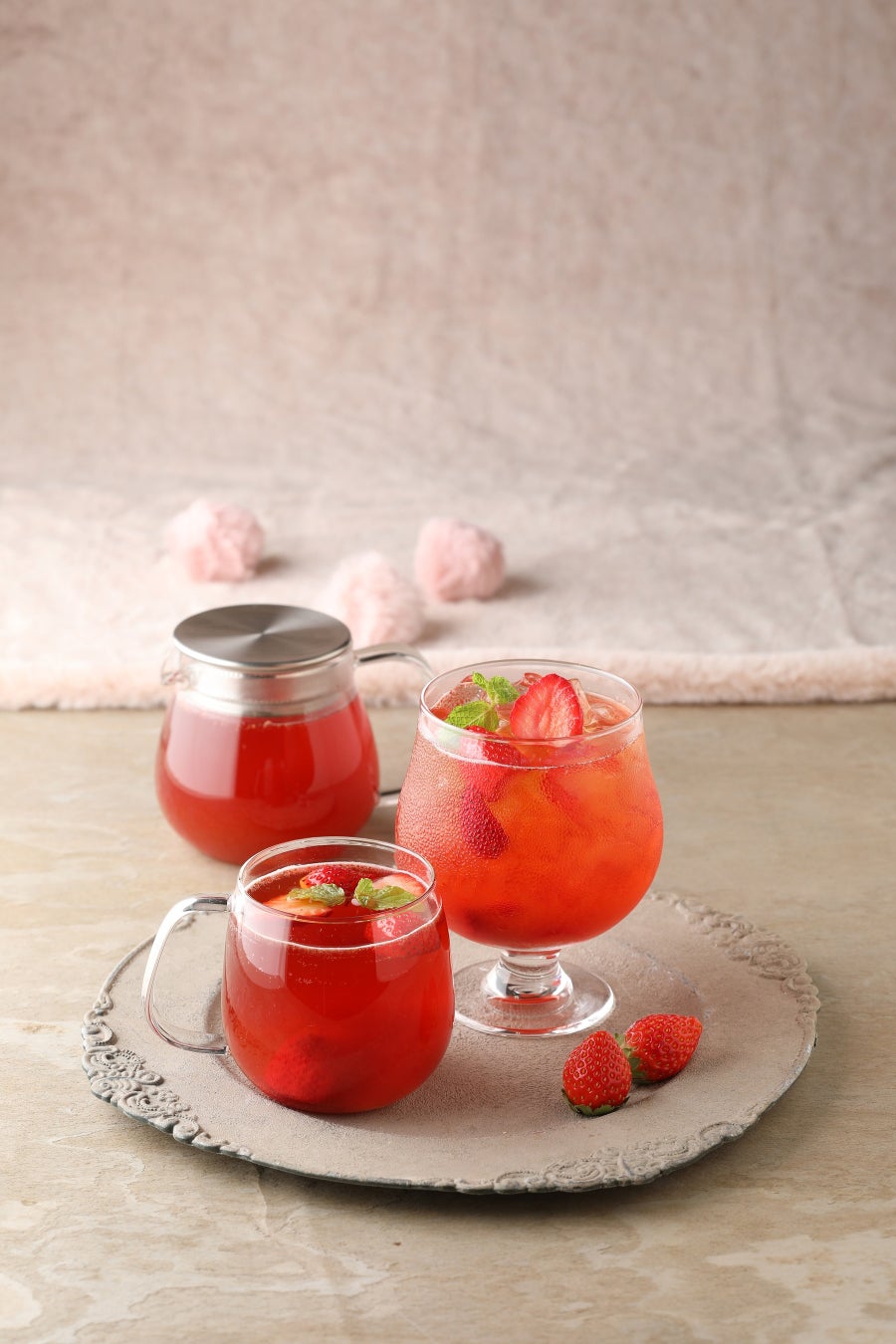 甘く優雅な香りが特徴のオリジナルフレーバーティー「ストロベリー& ローズ」に、同フレーバーの手作り紅茶シロップ、いちごの風味と香りが豊かな紅ほっぺの果実と自家製の紅ほっぺソースを加えました。いちごの香りと爽やかな甘みを存分に味わえる、ホッとする優しいおいしさです。冬のいちごの魅力をぎゅっと閉じ込めた特別な紅茶を、心ゆくまでお楽しみください。