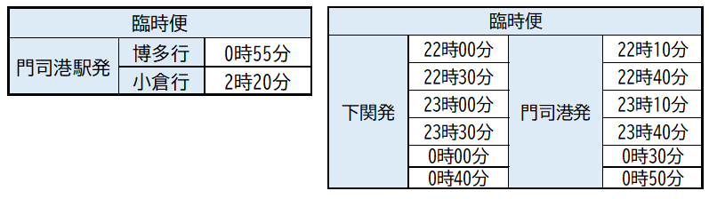 〇今回から門司港レトロエリアにおけるカウントダウン花火の開催はありません。〇イベント専用駐車場はありません。臨時運行する下記公共交通機関をご利用ください。