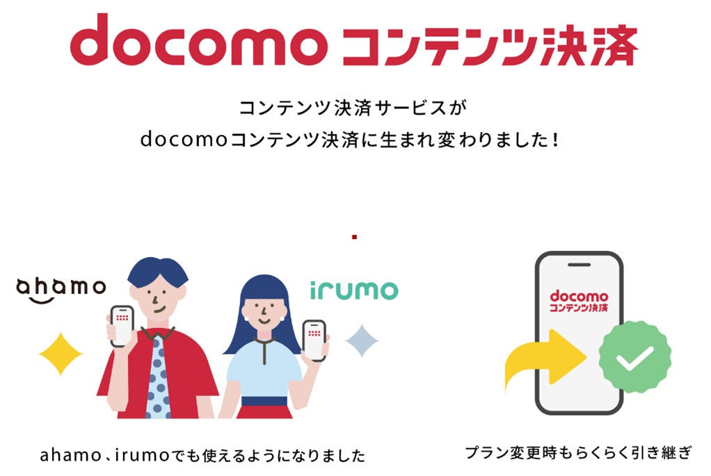 株式会社NTTドコモ(以下、ドコモ)は、「ahamo」「irumo」をご契約のお客さまが、ドコモのポータルサイト「dメニュー」掲載のコンテンツサービスを購入する際の決済手段として、「docomoコンテンツ決済®※1(dメニュー掲載コンテンツ)」を2025年3月5日(水)から追加いたします。