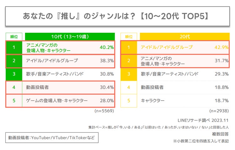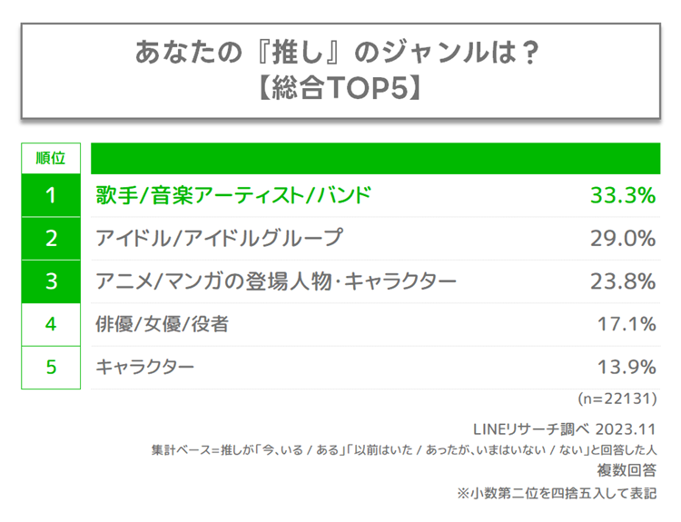 LINEリサーチ、全国の男女を対象に、「推し」に関する調査を実施