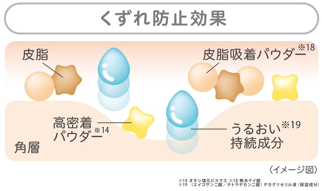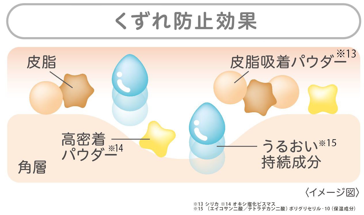 肌色補正※2効果で色ムラ等をカバー。1日中べたつかず、乾燥・皮脂崩れを防止します。