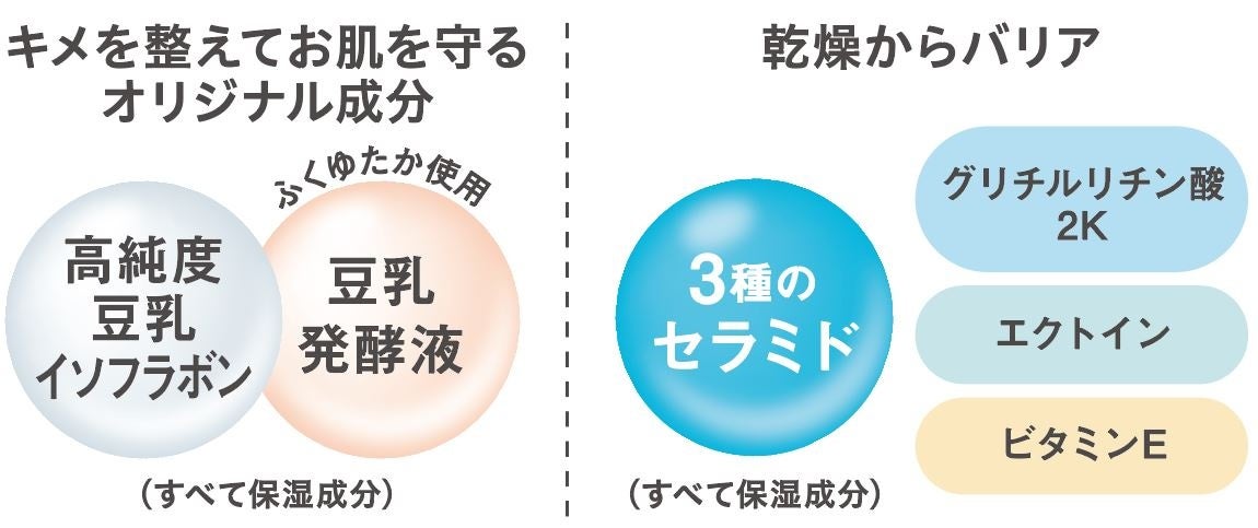 新たに高純度豆乳イソフラボン※3とエクトイン※3を配合し、うるおい感がアップ。