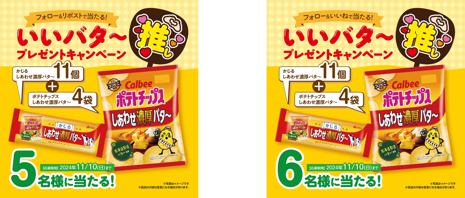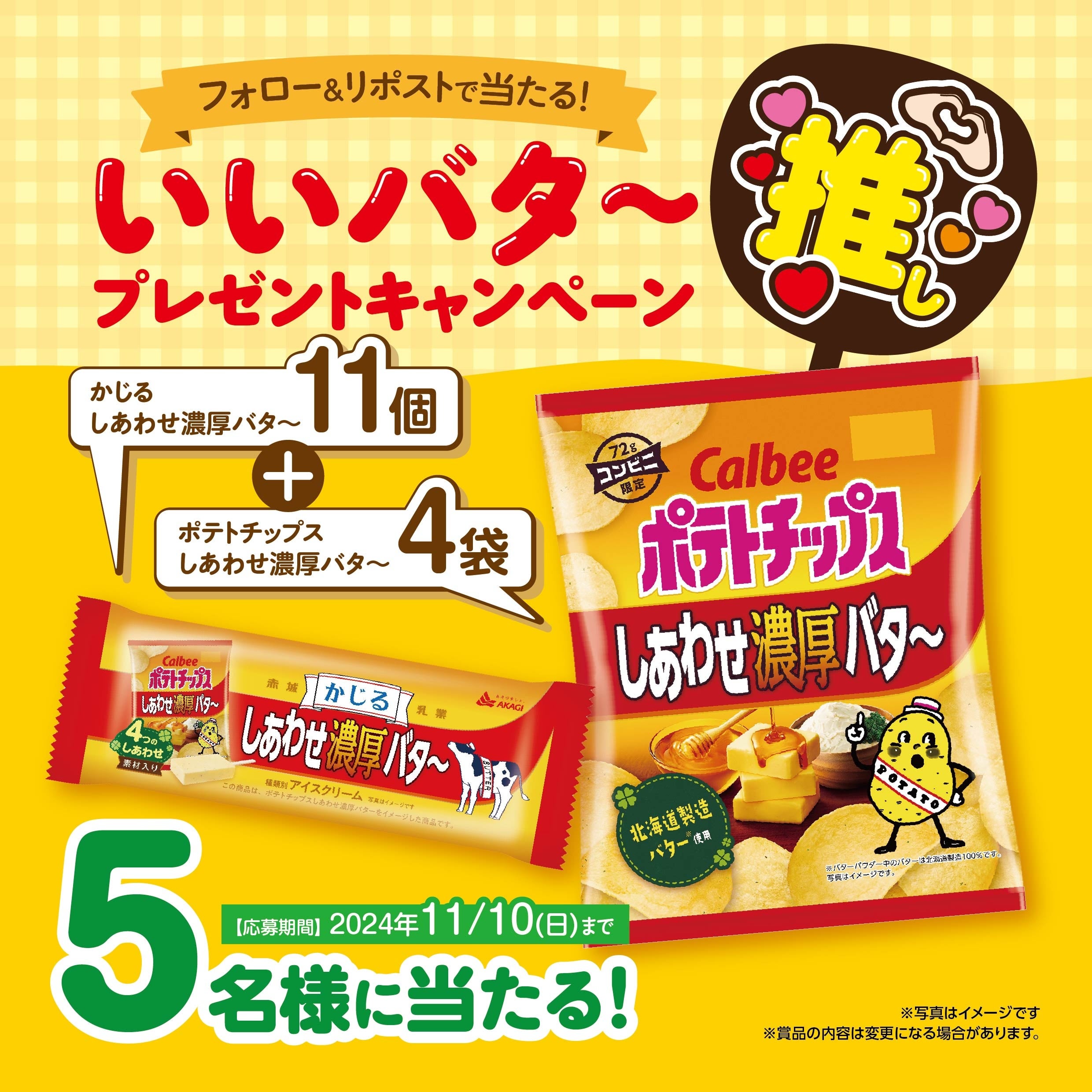 今度の「かじる」は「カルビーポテトチップス」とコラボ!? 11月04日いい推しの日にあわせて、「いいバター推しプレゼントキャンペーン」を実施! 「かじるしあわせ濃厚バタ~」