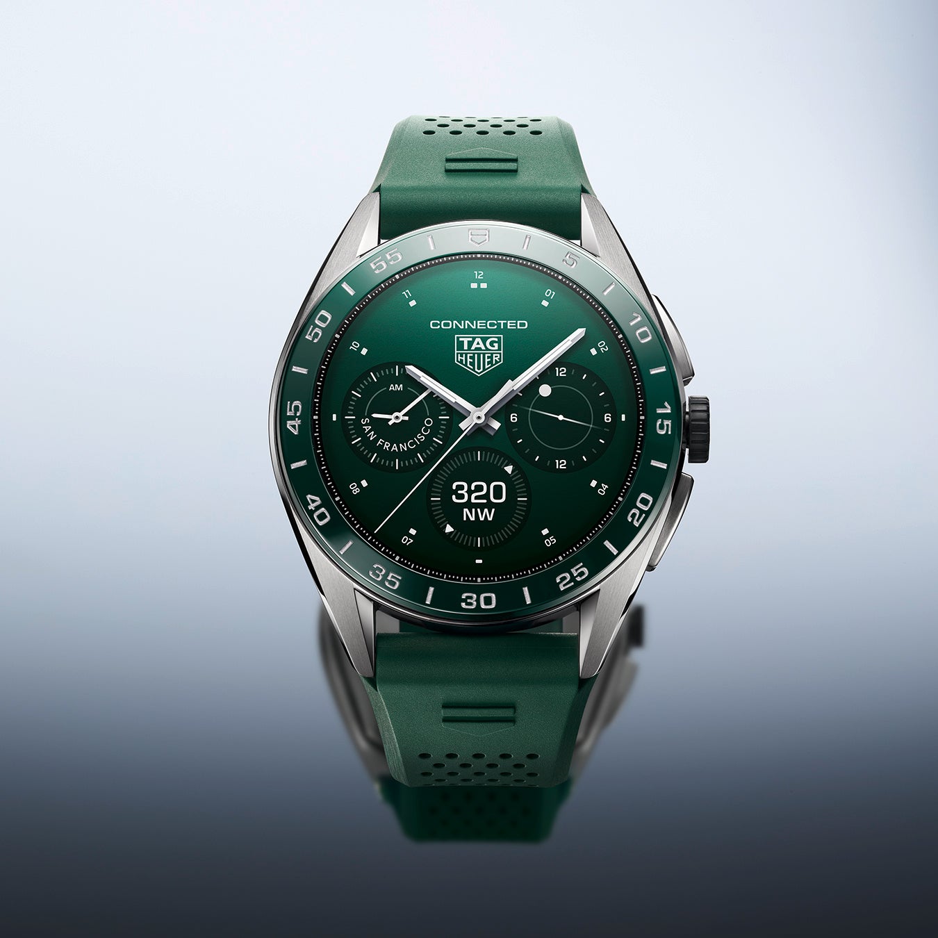 LVMH ウォッチウィーク、アメリカ合衆国 マイアミ — 2024年1月29日: 45 mmサイズのTAG Heuer Connected Calibre E4シリーズにグリーンが映える新作の誕生です。コネクテッドウォッチの世界的なパイオニアであるタグ・ホイヤーが、ウォッチメイキングの伝統的なエレガンスと最先端テクノロジーを融合させた精巧なタイムピースをお届けします。