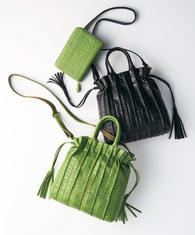 上質な牛革にクロコダイル型押しを施した、プリーツデザインの2ウェイトートバッグが登場。揺れるタッセルがポイントのバッグです。