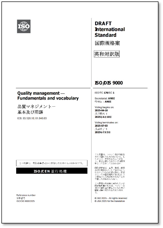 ISO/DIS 9000:2025 Quality management - Fundamentals and vocabulary 品質マネジメント-基本及び用語
