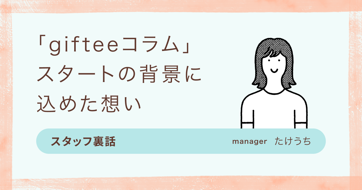 「gifteeコラム」では、十人十色のgifteeスタッフたちが、それぞれの切り口で、個性豊かなコラムを投稿します。本コーナーを通じ、異なる色を持つお客様ひとりひとりにとって、より痒いところに手が届くような発信を行ってまいります。