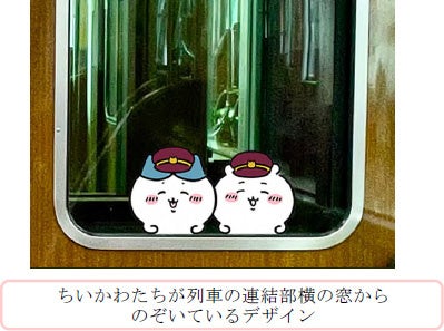 ちいかわたちのぬいぐるみが、阪急電車をイメージしたマルーンカラーの制服を着て、装飾列車の乗務員室に添乗します。