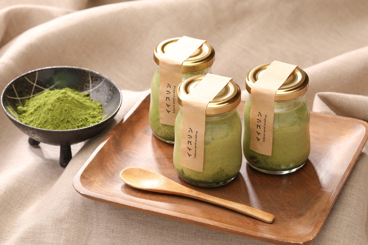 まろやかな抹茶の旨味が、カラメルのかわりに層を作る小倉あんと絡み合う和風のプリンです。