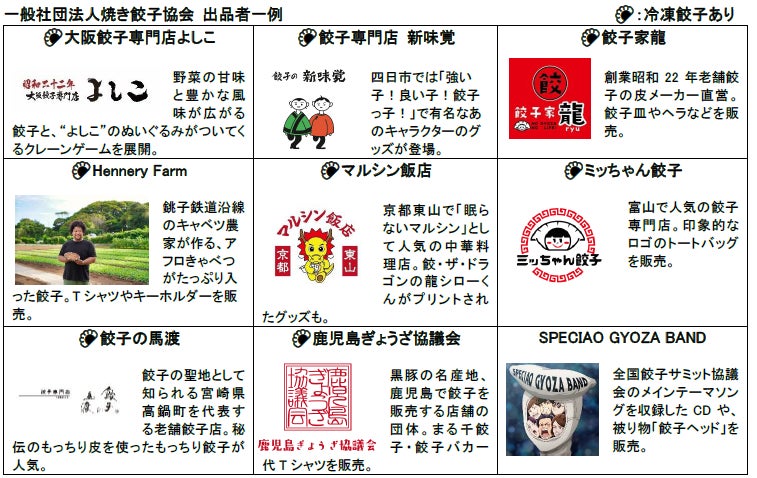 日本の焼き餃子文化を広めることを目的に設立。全国各地で餃子を愛する餃子職人を掘り起こし、餃子愛好家につないでいる。「狂愛!餃子ランド Vol.2」には、餃子にまつわる出品者を多数引き連れて登場。