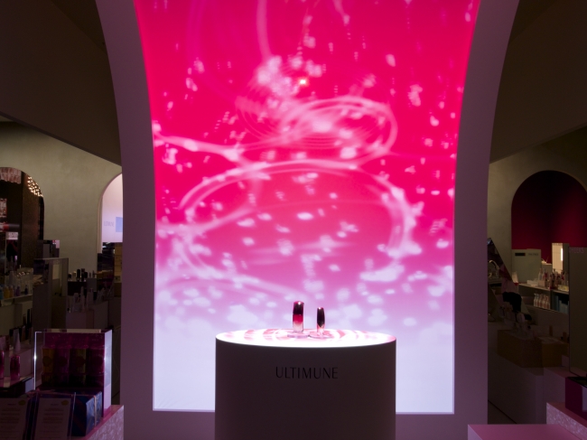 SHISEIDO THE GINZA 1階ビューティーマルシェのステージに、肌本来の力を引き出す、革新の美容液「アルティミューン」のイメージを表現した、光のインタラクティブアートが2015年8月20日より登場しました。