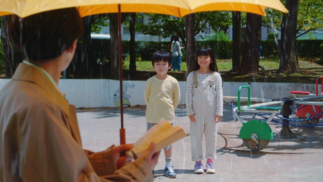 公園のベンチに腰かけて読書を愉しむふしぎな雨男の周りだけ雨が降っています。その様子が気になって仕方がない男の子と女の子が物陰からうかがっています。女の子がモジモジする男の子の背中を押して、ふしぎな雨男の前に出ると、男の子は後ろ手に何かを隠している様子。時を同じくして、丁寧にシャンプーをしてきた彼女が公園に到着し、男の子が何かを渡す様子を目撃します。もらったものはふしぎな雨男にそっくりな「てるてるぼうず」。あまりの可愛さに、2人は思わず笑顔になります。そして、走り去る女の子の髪を見ながら、彼女は「あの頃みたいに、素直な髪でいたいな」とつぶやきます。