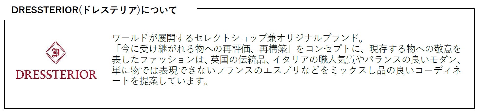 株式会社アテニアは、セレクトショップブランド『DRESSTERIOR(ドレステリア)』とのコラボレーションアイテムの発売をいたします。