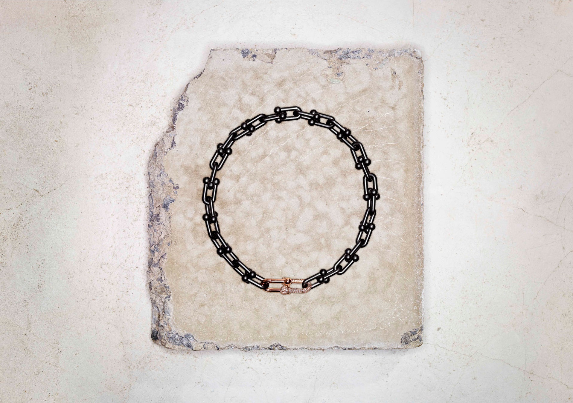 ダイヤモンドとローズゴールドのシングルリンクが目を惹く、ブラックチタンのブレスレットとネックレスを発表