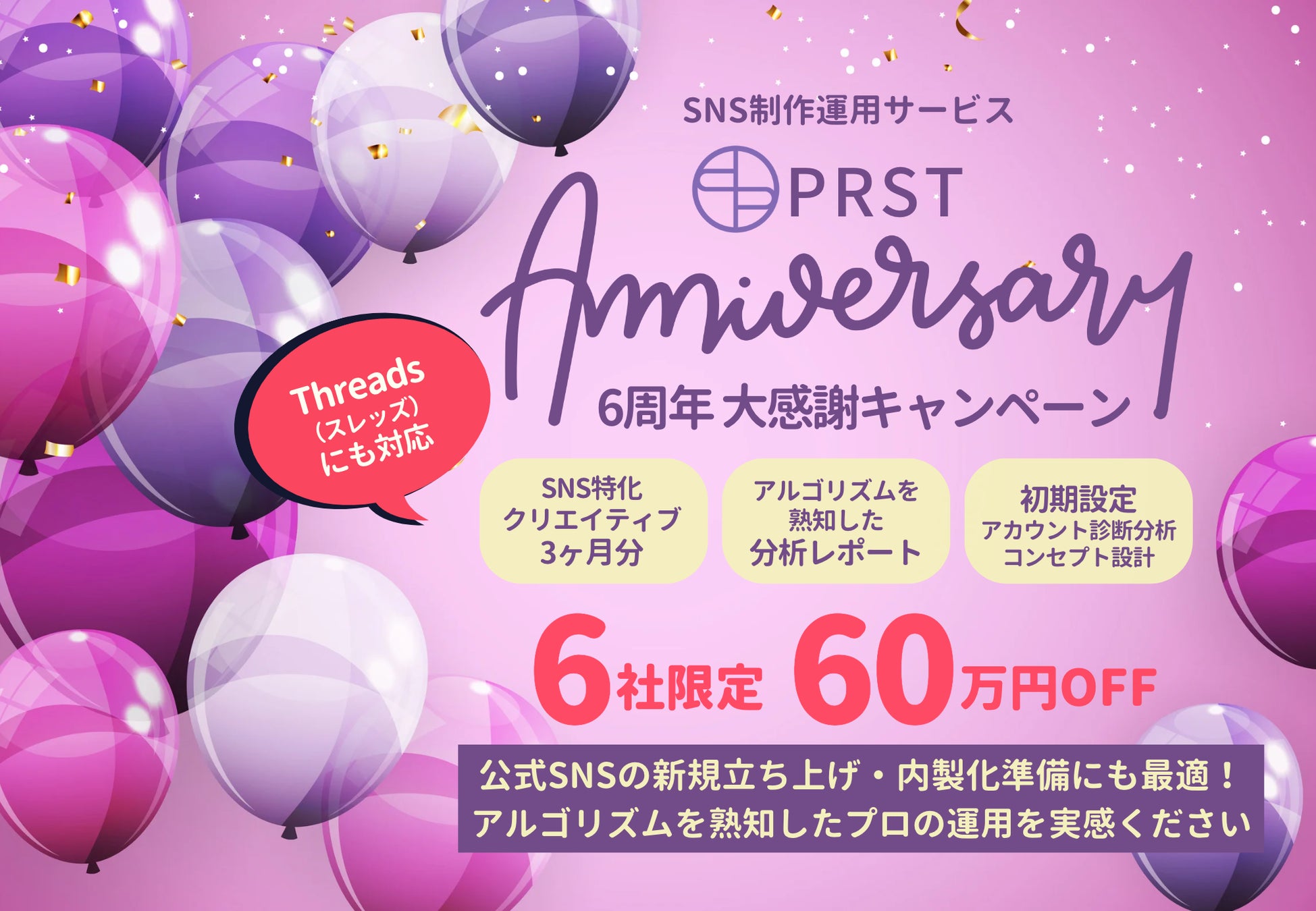 【Threads(スレッズ)にも対応】圧倒的なパフォーマンス!フォロワー10倍!エンゲージメント率5倍の実績も!SNS運用サービス『PRST』6周年を記念して制作・分析つき特別プランを60万円OFF!