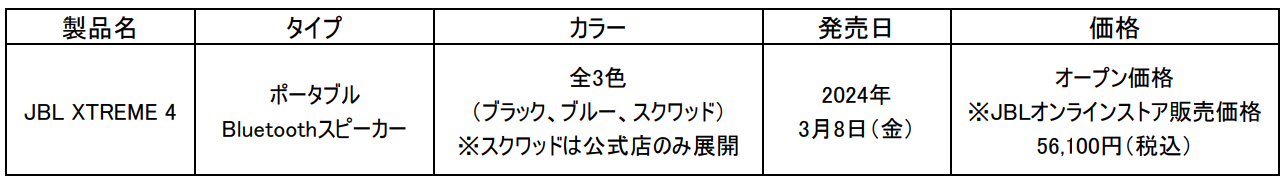 ※JBL.com公式ページ:https://jp.jbl.com/XTREME-4.html